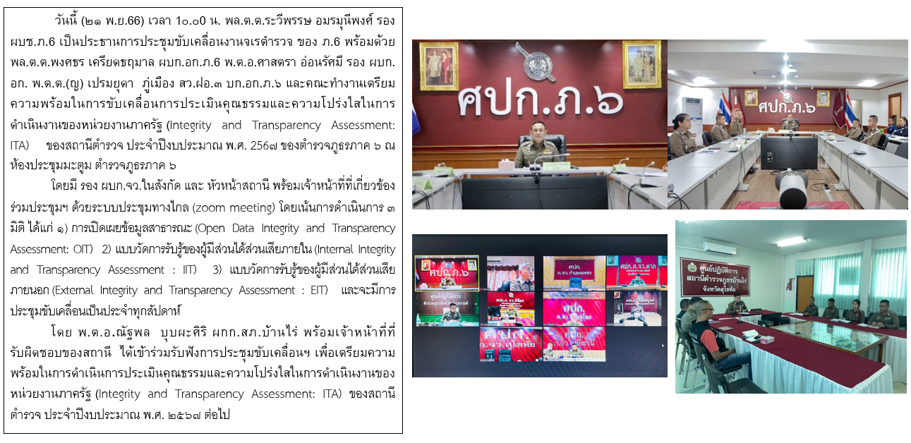 ขับเคลื่อนการประเมินคุณธรรมและความโปร่งใสในการดำเนินงานของหน่วยงานภาครัฐ (Integrity and Transparency Assessment: ITA) ของสถานีตำรวจประจำปีงบประมาณ พ.ศ. 2567 (ระดับภาค 6)